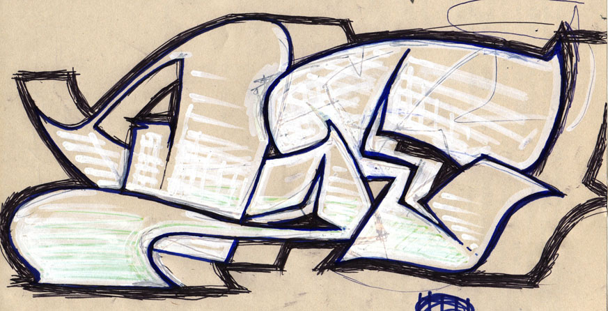 Diverse Grafitti-Stilübungen. Zur Umsetzung kam es nie. „iran“ hielt ich tatsächlich für einen guten potentiellen Sprüher-Namen, als Umstellung der letzten vier Buchstaben meines Vornamens.