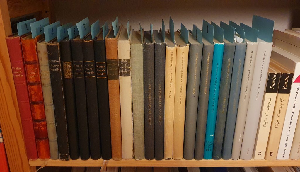 Der Kunsthistoriker Heinrich Wölfflin überarbeitete seine zuerst 1915 erschienenen „Kunstgeschichtlichen Grundbegriffe“ immer wieder, von Auflage zu Auflage. Nicht unbekannt ist etwa die ab der zweiten Auflage von 1917 vollzogene Ersetzung „romanischer“ durch „germanische“ Begriffe durch den zunehmend deutschnational und völkisch argumentierenden Schweizer – so wird, um nur einige Beispiele aus dem ersten Kapitel der Einleitung anzuführen, „Kontrast“ zu „Gegensatz“, „generell“ zu „allgemein“, „orientiert“ zu „gerichtet“, „Existenz“ zu „Dasein“, „Resultate“ zu „Ergebnissen“. Jedoch liegen auch hierzu keinerlei umfassende Darstellungen vor, geschweige denn eine textkritische Edition. Mittels einer solchen möchte ich unter Einbeziehung aller 19 bislang erschienenen Auflagen (also auch der posthum veröffentlichten) endlich Abhilfe schaffen.